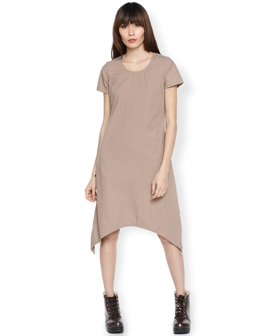 Khaki Khadi Basic Asymmetric Dress