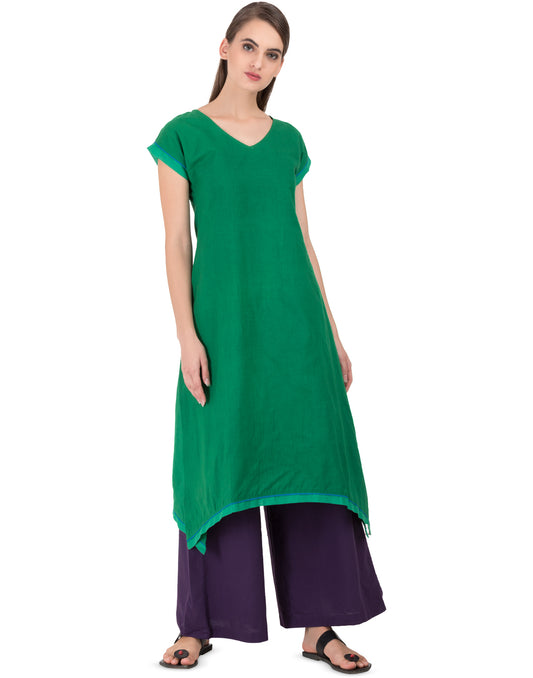 Green Khadi Jhunjhunu Asymmetric Tunic