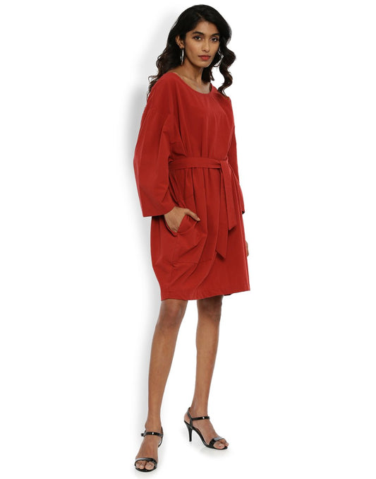 Maroon Belted Dress