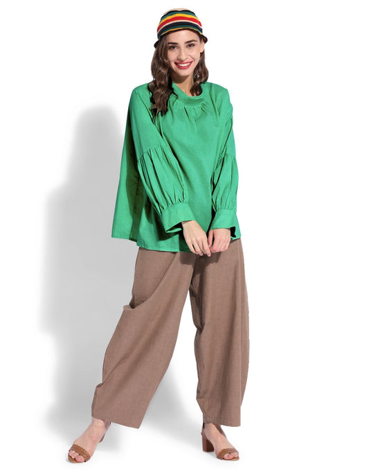 Green Balloon Sleeve Top