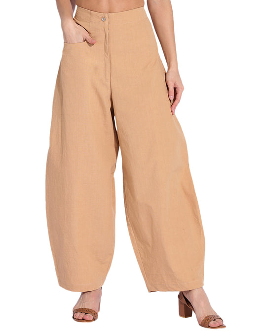 Beige Fitted Cocoon Pant