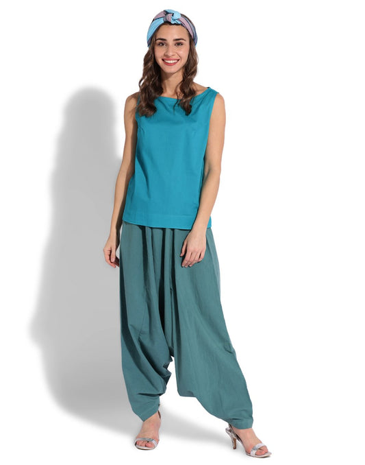 Turquoise High Neck Sleeveless Top