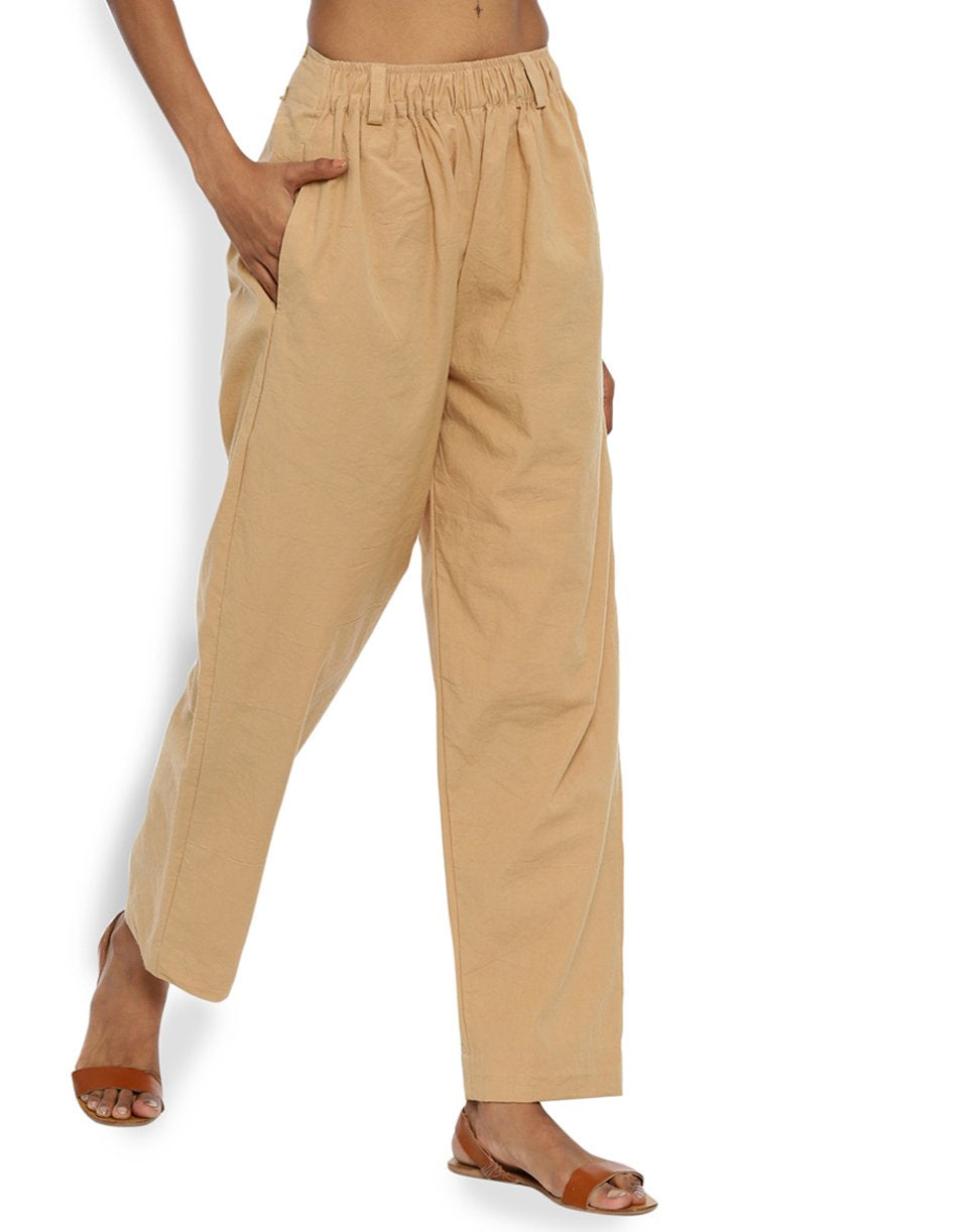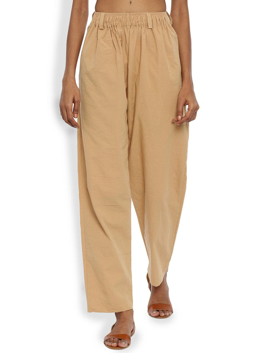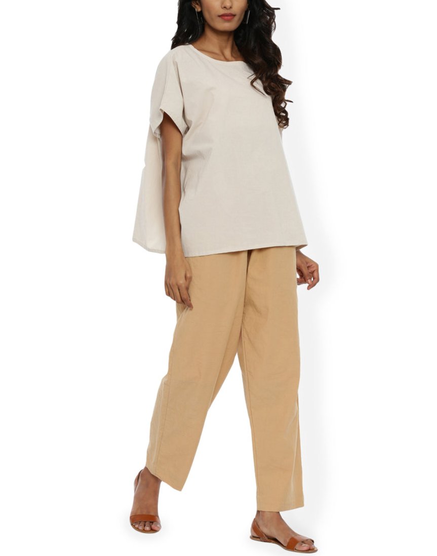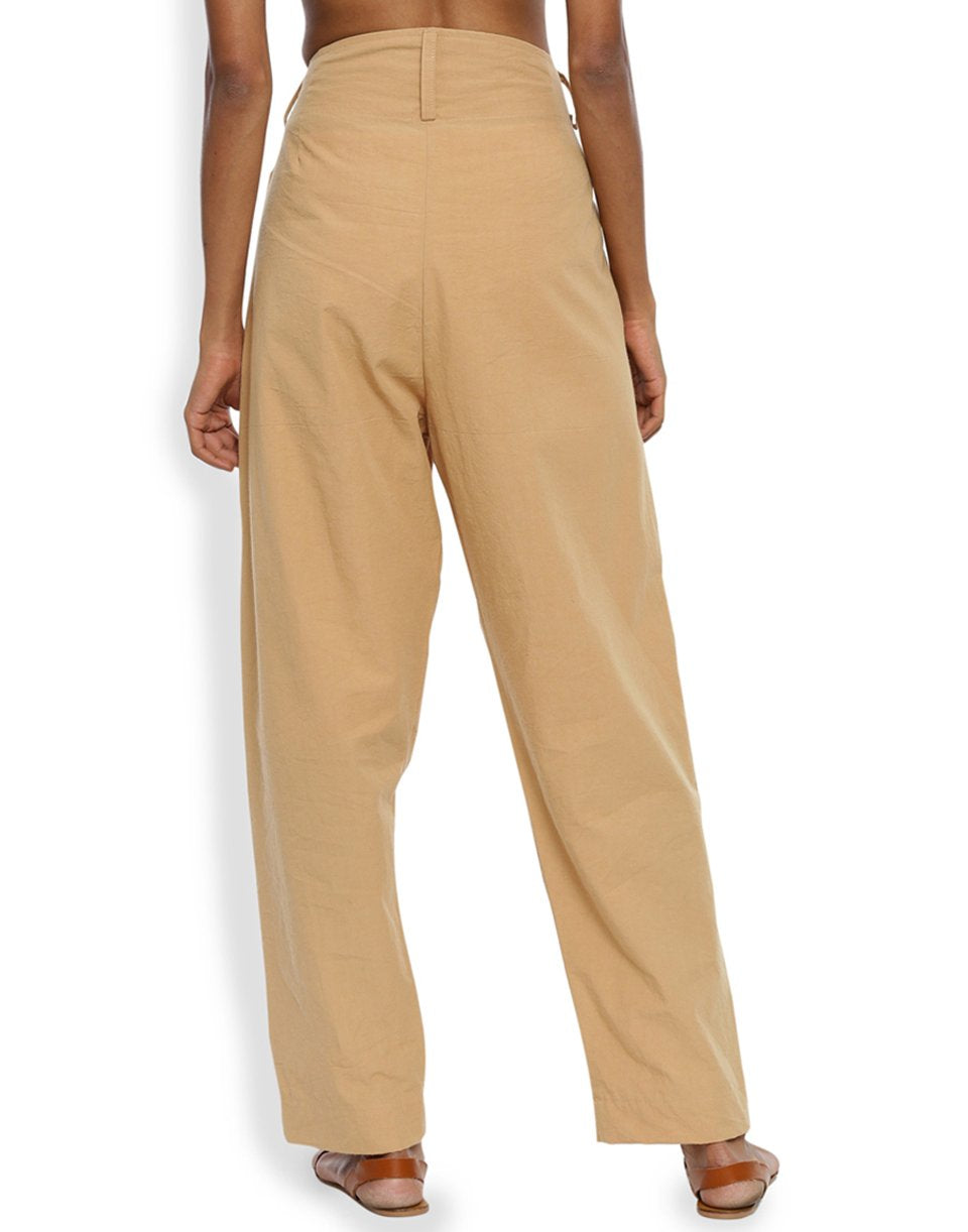 Beige Front Gather Pant