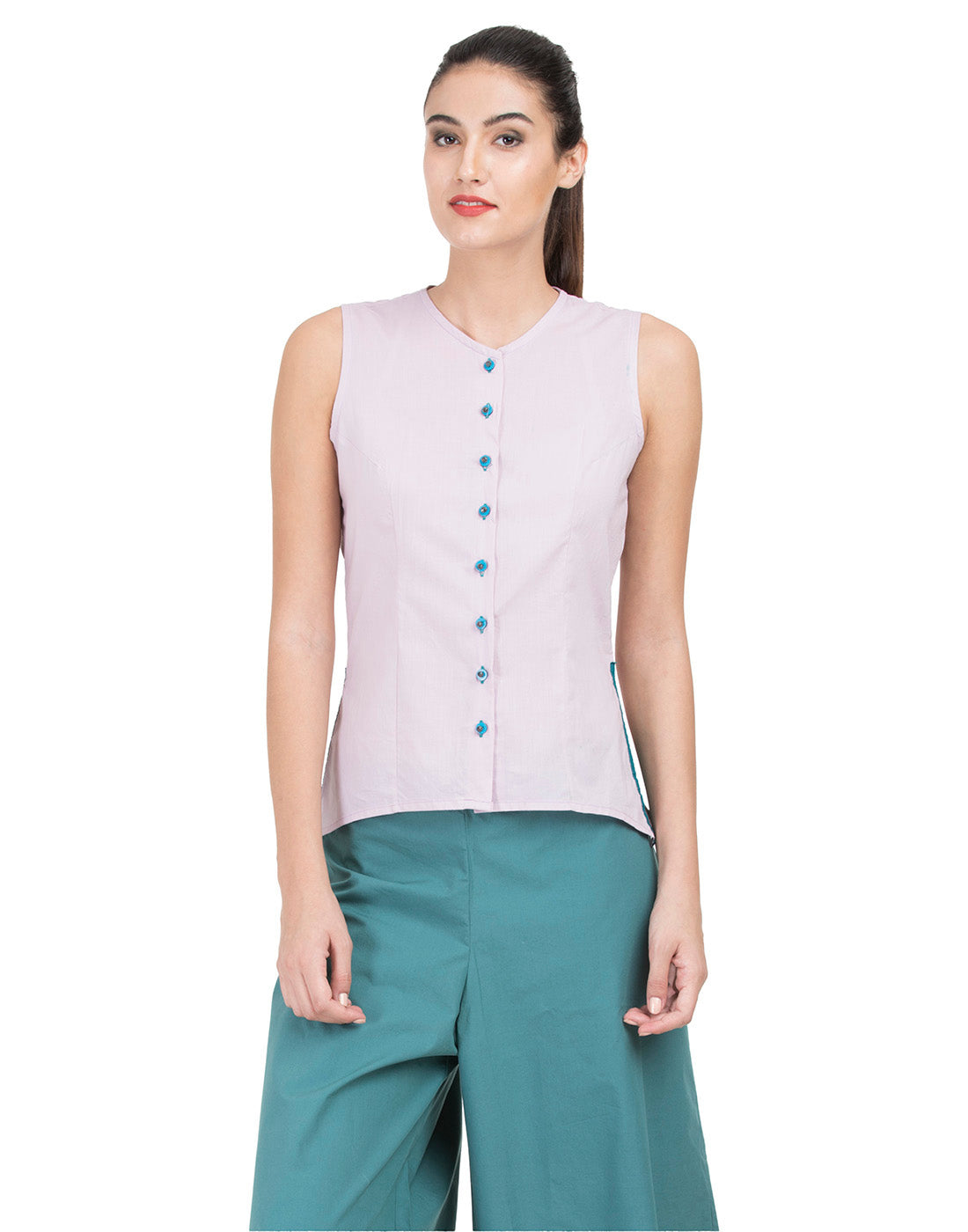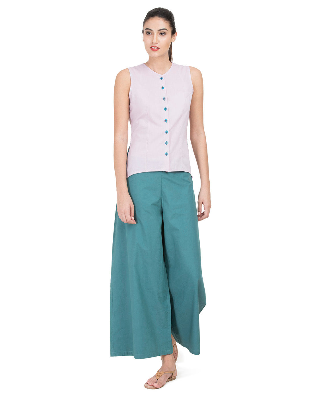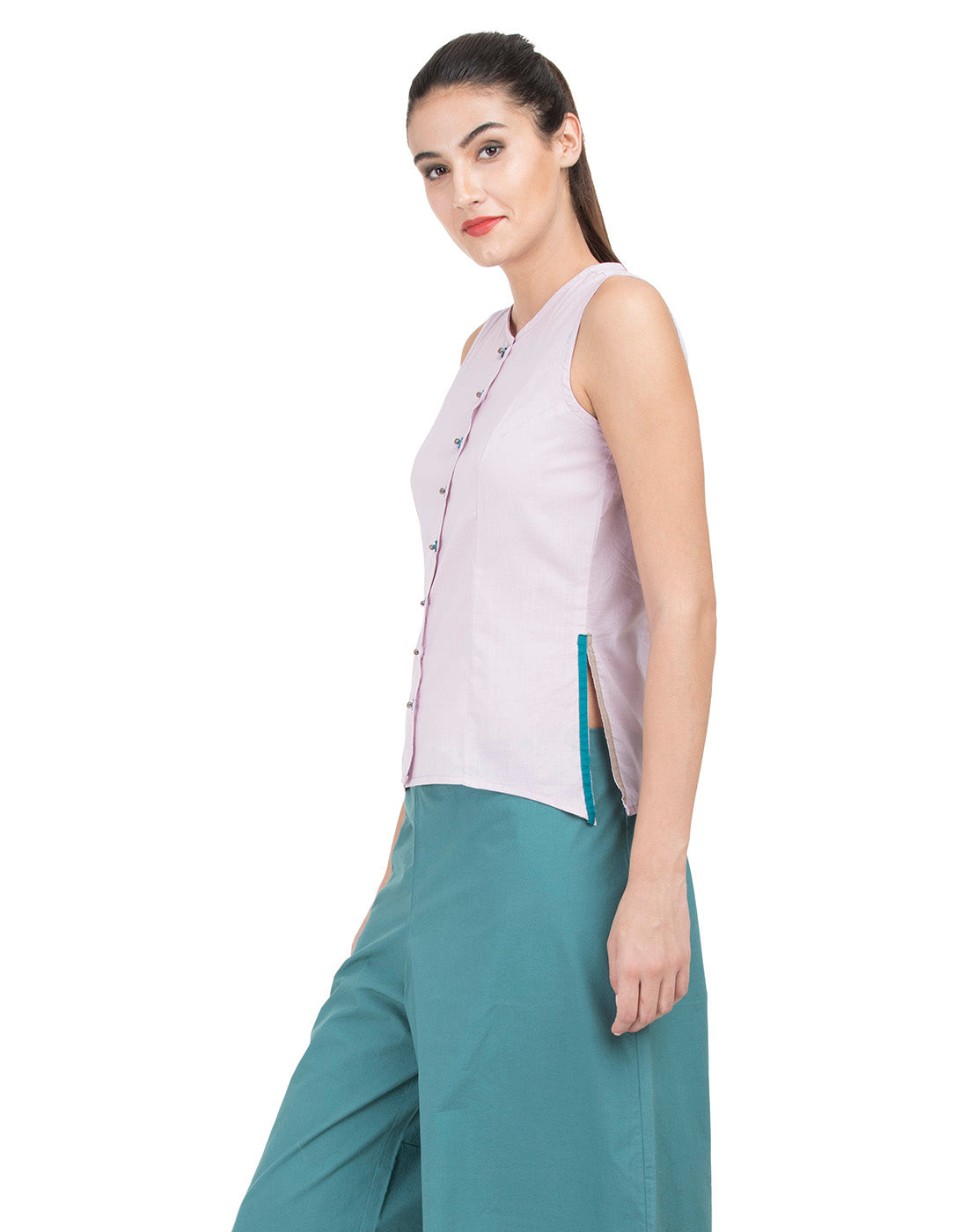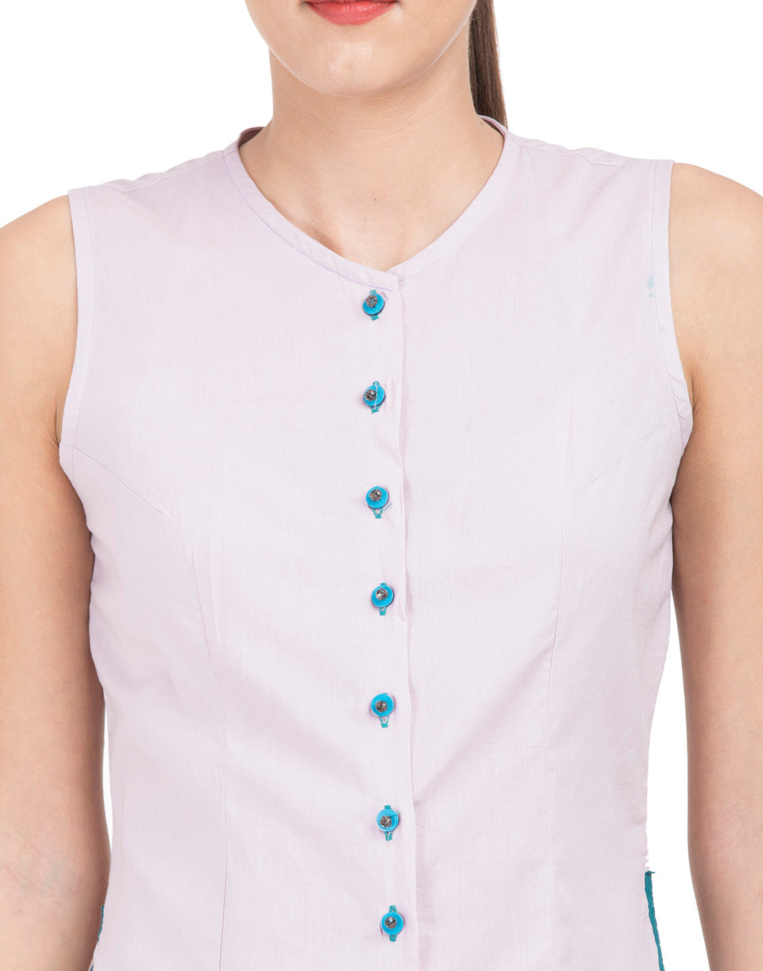 Grass by Gitika Goyal presents this lavender coloured top, which will make you look effortlessly stylish and glamorous. Made from cotton fabric, this top exemplifies comfort. This can be teamed with matching earrings & sandals.