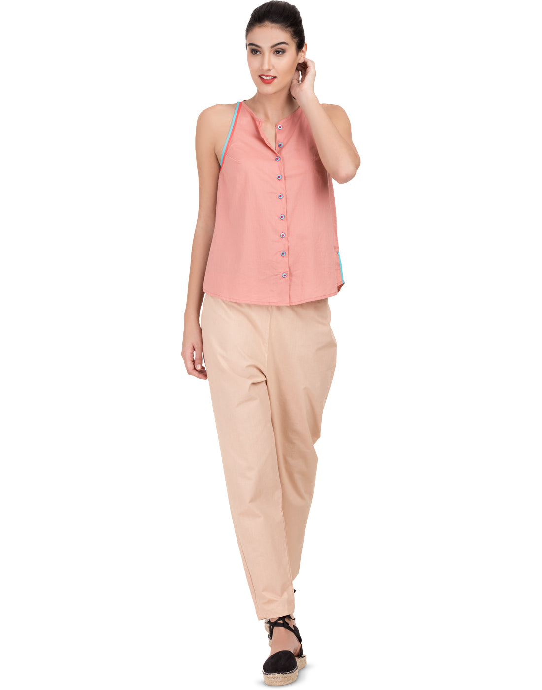 Revamp your wardrobe for the summer wearing this nude coloured top by Grass by Gitika Goyal. Made of premium quality cotton fabric, this top is highly comfortable and a perfect pick of the season. This top can be paired with basic blue coloured jeans and sneakers.