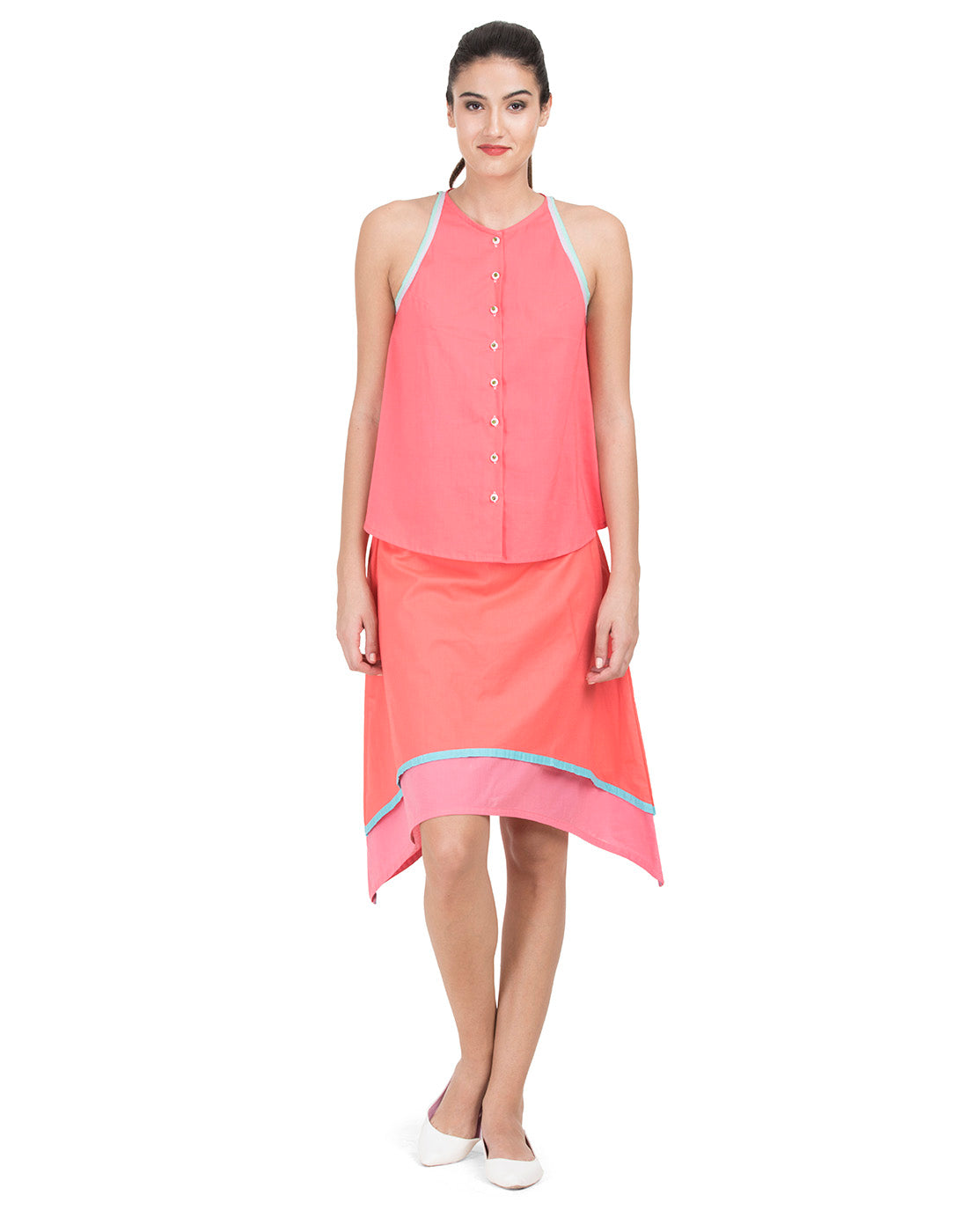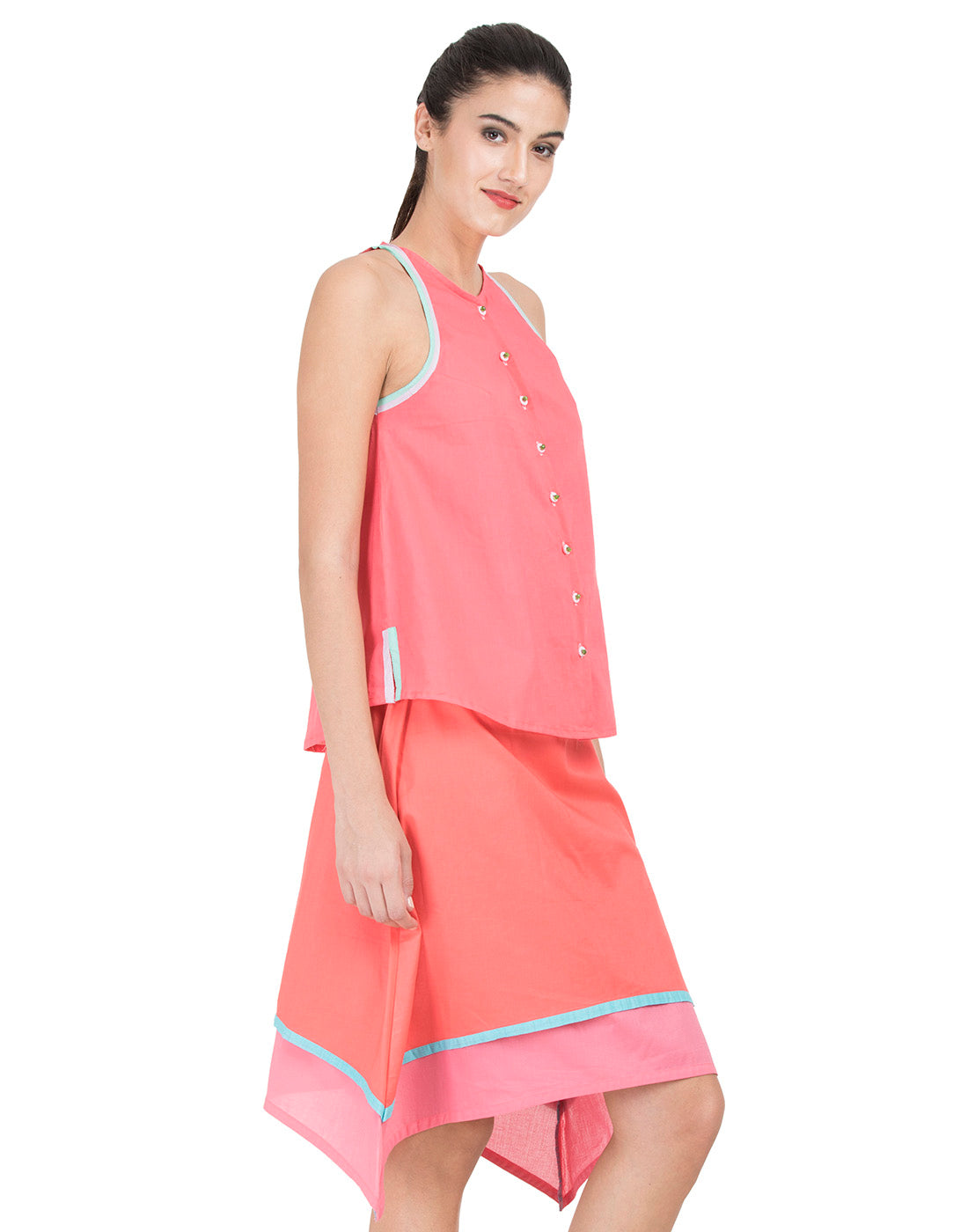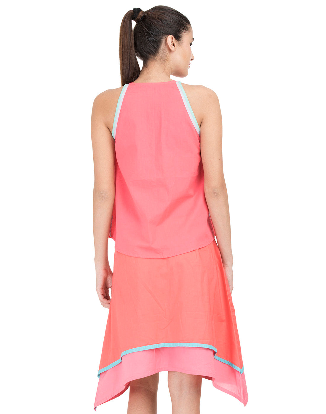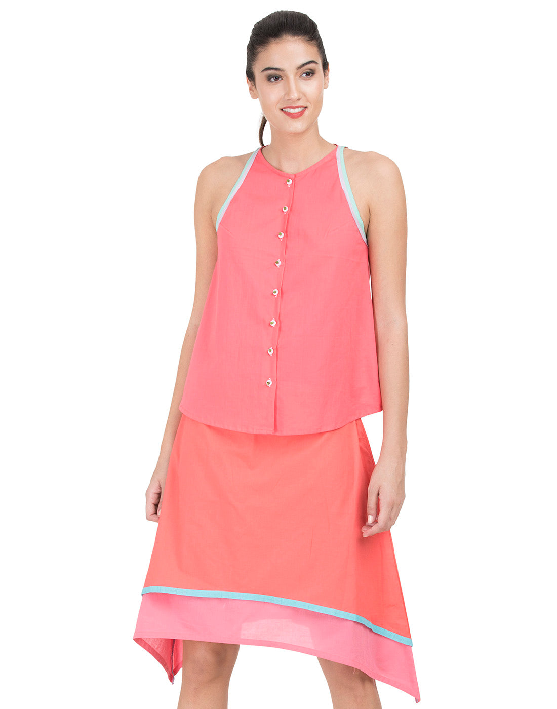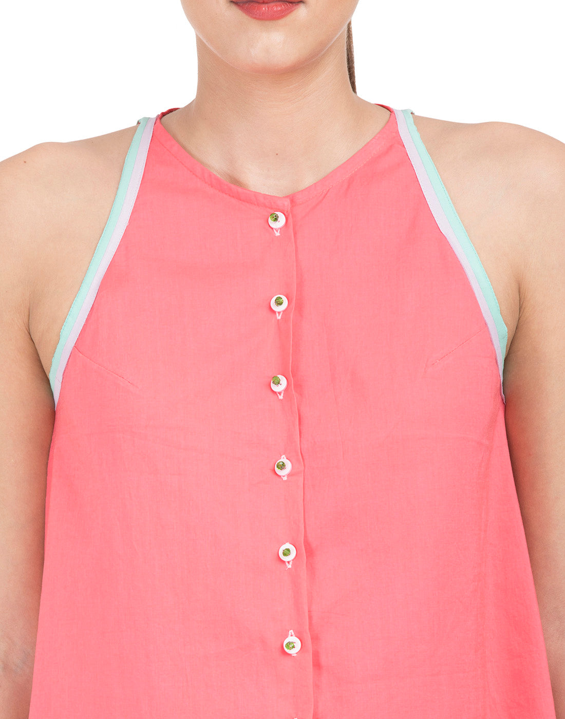 A voguish pick for casual evening meets is this pink coloured top from Grass by Gitika Goyal. The contrast banding detail on this flared fit top will beautifully underline your feminine charm, while It's cotton fabric will offer you utmost comfort.