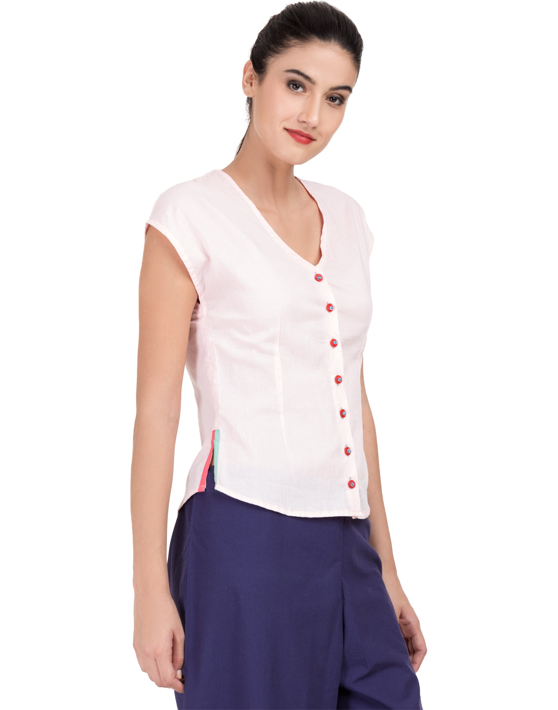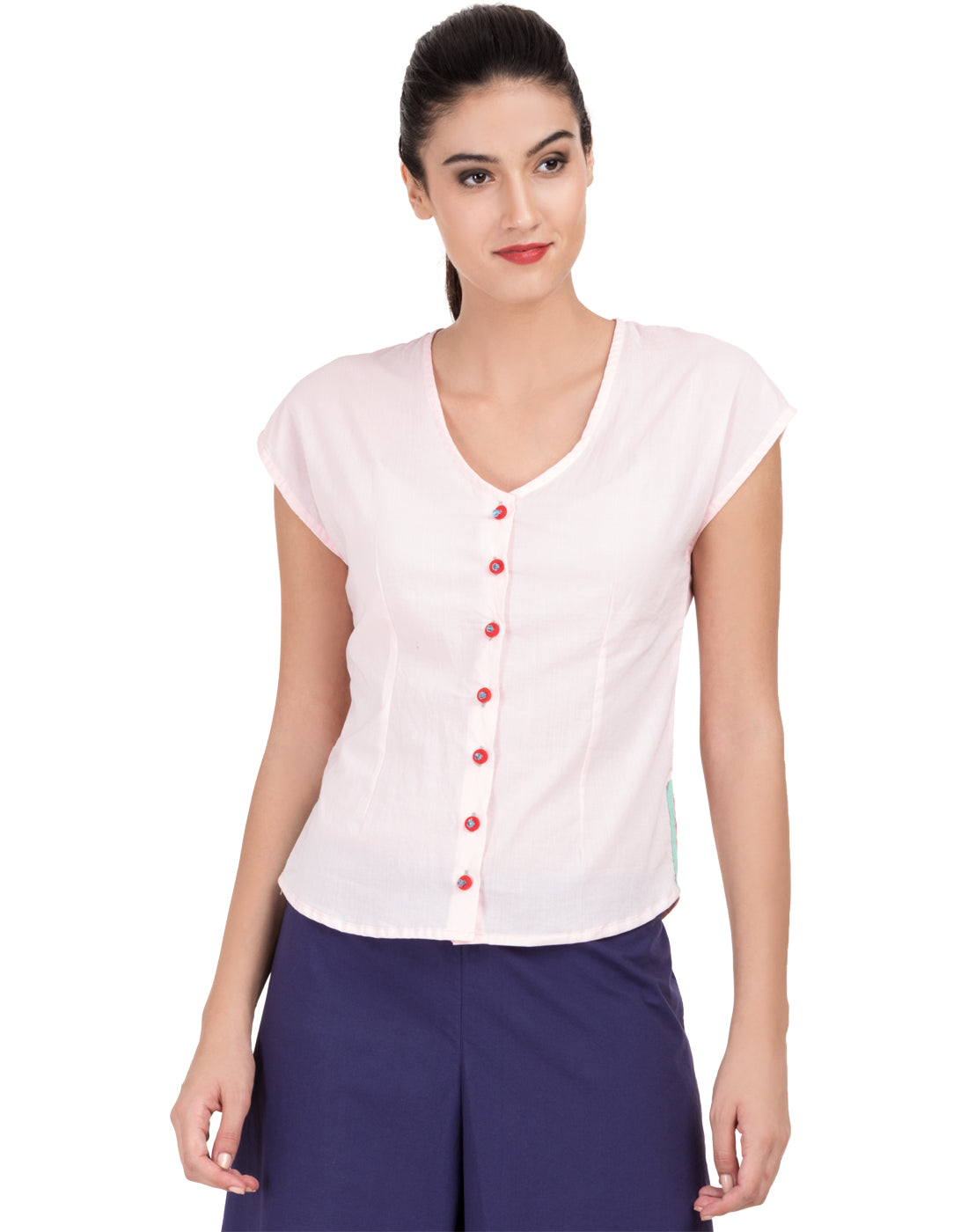 Play up girly elements correctly wearing this light pink coloured top by Grass by Gitika Goyal. Fashioned using cotton fabric, this top will keep you at comfort all day long. Designed to perfection, this classy top will look great when clubbed with jeans and pumps.